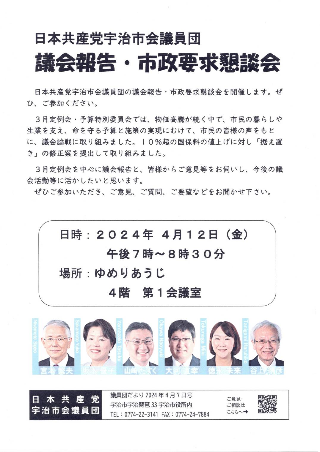 2024年4月12日にゆめりあうじで議会報告・市政要求懇談会を実施しました。